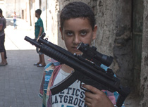 巴勒斯坦迎開(kāi)齋節(jié) 兒童在炮火聲中玩槍?xiě)?zhàn)游戲