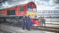 4月27日,首趟由英國駛往中國的中歐貨運班列即將結束1.2萬多公里的旅程,滿載32個貨柜的母嬰用品、軟飲料和維生素產品等,抵達目的地浙江省義烏市。