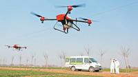 2月26日,陜西渭南臨渭區三張鎮油張村麥田,病蟲害防治專業技術人員操作植保無人機進行小麥春季化學除草作業。